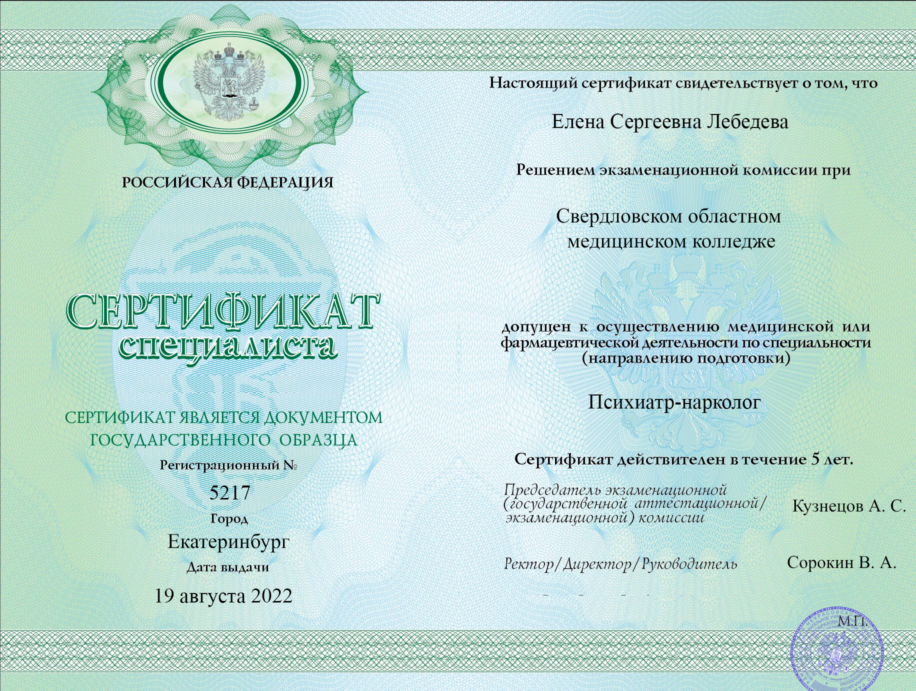 Елена Сергеевна Лебедева врач нарколог клиники доктора Стукаловой в Жуковке